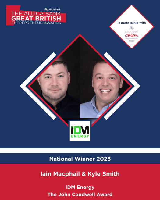 John Caudwell, who sponsors the award, said: “Huge congratulations to Iain Macphail and Kyle Smith of IDM Energy, the winners of this year’s John Caudwell Award at The Allica Bank Great British Entrepreneur Awards.
